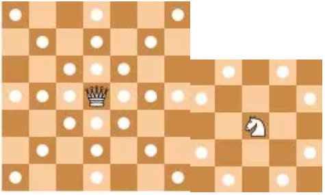 - 骑士的攻击范围为:**骑士所在的格子**,以及骑士所在的格子走一列两行(或者一行两列)能走到的所有格子;
